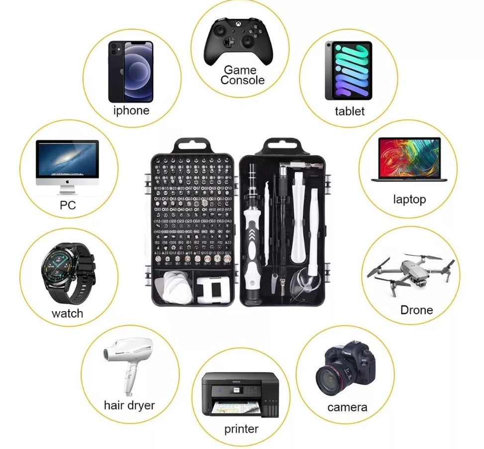 El kit de destornilladores 115 en 1 tiene muchas herramientas, viene con todas las herramientas necesarias para una gran variedad de trabajos. Perfecto para reparar ordenadores portátiles, dispositivos móviles y otros artículos de precisión como relojes de pulsera y gafas. Peso ligero y diseño compacto.